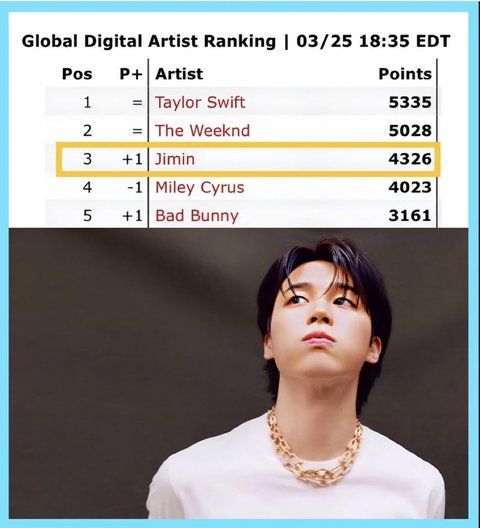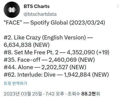 와 방탄 지민 글로벌 스포티 2위네