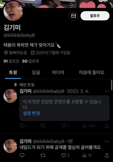 추가-> 알아보니 ㅅㄹ는 팔로적고 네임드도 아니고 그 5명중 하나가 ㅅㄹ라는 닉의 올프 해프인데 걔가 ㅁㄴㅈ중 하나랑 맞팔인 인맥있음