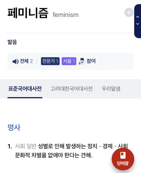 일단 나는 페미가 아님 그냥 공학 다니는 고딩임 내가 여초 커뮤에 갑자기 이런 글을 쓰는 이유는 10대판의 자라나는 학생들에게 페미니스트의 바른 뜻을 알려주고 싶어서임