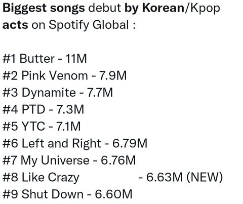 (특히, 이 스트리밍 기록은 역대 케이팝 노래 중 8위&