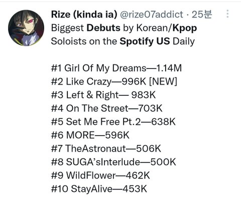 (이는 케이팝 솔로 최고 순위임)