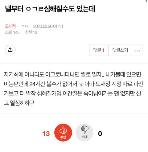 ㄱㄱㄱ1차정지는 일주일이고 4차까지 정지먹으면 1년간 글못쓴대 어그로글 고센이 처리잘해줌