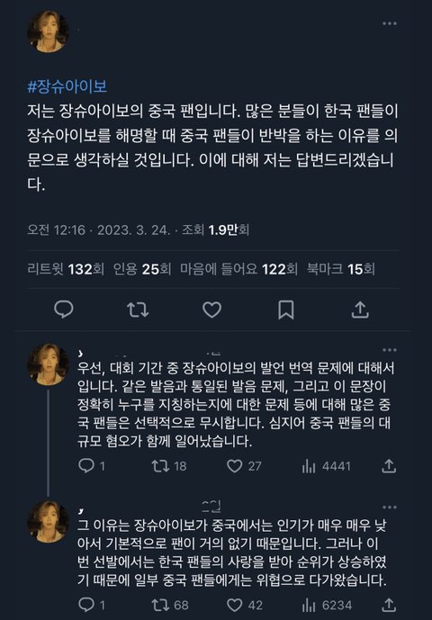 문제가 되는 차웅기의 앞담 논란인데 중국 팬이 한 말이야 견제픽 때문에 일부러 오역이 아니라는 주장을 하고 있다는