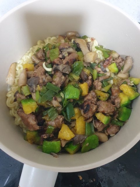 전 면은 하나반 넣었지만 분말스프는 두개 다 넣었어요.