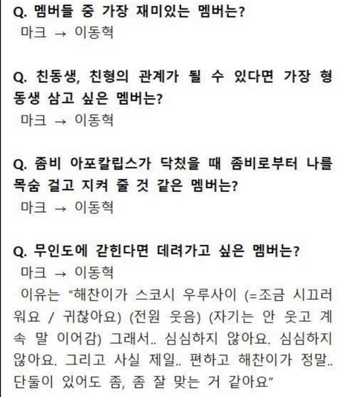 이거보면 마크 진짜 해찬이 좋아하나봄