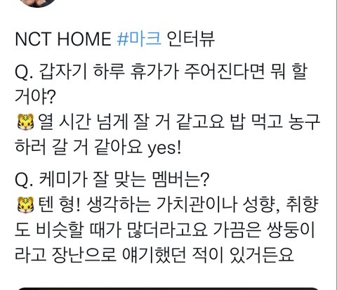 이거보면 마크 진짜 해찬이 좋아하나봄
