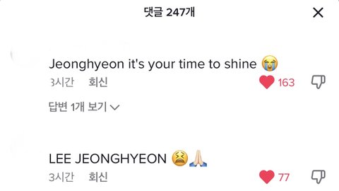 분량 좀 주니까 외퀴들 바로 붙음 오늘 예고편 영상에 이정현 언급도 늘고ㅠㅠ 하 틱톡에 jeonghyeon 치면 최근영상으로 댓글도