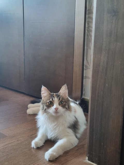 이렇게 며칠이 지난 후 부터는 문을 열어도 침대 밑까지는 도망가지 않았어요. 발매트에서는 도망갔지만 비교적 가까운 곳에서 편안히 안거나 누워서 이제 집사를 바라본답니다. 이렇게 말이죠~