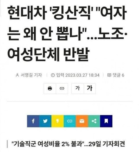 노동강도에 따라 자연스럽게 나뉜거지 뭘 또 남녀차별 ㅇㅈㄹ? 체력이 필요한 라인에서 팔굽혀펴기도 못하는것들 데려다가 뭣에다 쓴데냐?