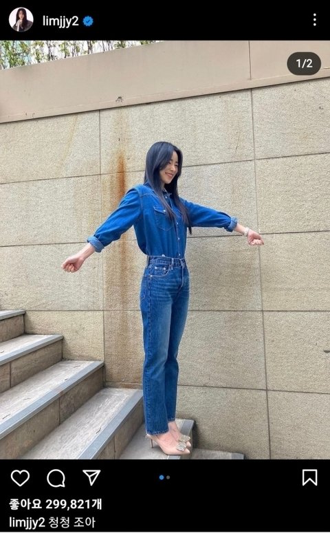 청청 좋다며 청청 패션 사진을 올린 박연진