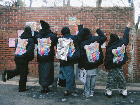 다같이 옷 맞춰 입고 뒤돌아서 찍는 거 너무 귀여움
