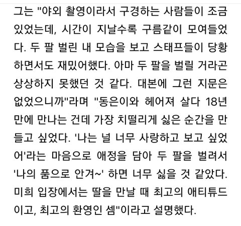 근데 저 두 팔 벌리는 게 대본에는 없었다고 함