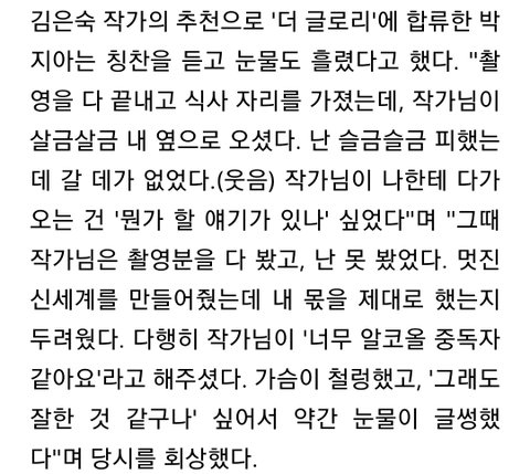 김은숙 작가는 촬영분을 다 보고 박지아 배우는 못 본 상태에서