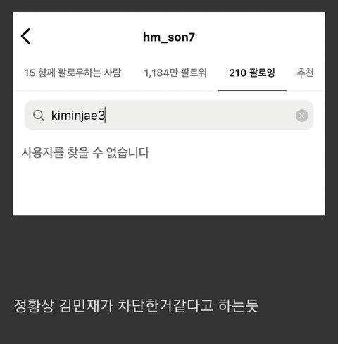 김민재가 우루과이전 인터뷰 끝나고 정신적으로도 체력적으로도 많이 힘이 든다, 대표팀보다 소속팀에 집중하고 싶다, 지금 논의중이다 라고 해서 논란이 됨 인스타로 해명╋사과글 올림 손흥민이 그 게시물에 좋아요 눌러줌 손흥민이 자기 계정에 대표팀 유니폼을 입고 경기를 뛴다는건 항상 자랑스러운 일이다 팬분들에게 감사하다 등의 글을 게시함 김민재가 손흥민 언팔╋(차단) 몇시간 뒤 손흥민이 김민재 다시 팔로우 하고 게시글에 좋아요도 다시 눌러줌 김민재도 다시 손흥민 팔로우 함 ㅋㅋㅋㅋㅋㅋ 뭐하자는겨..