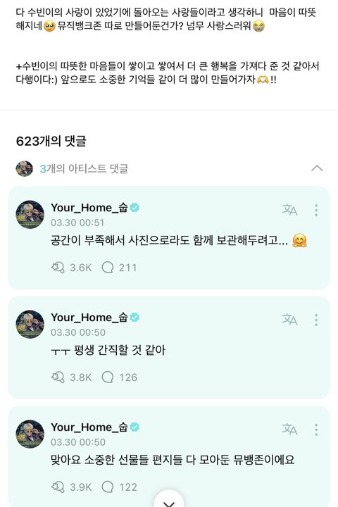 지난 주말 있던 투바투 콘서트에서 수빈이가 뮤직뱅크 관계자분들을 초대했는데