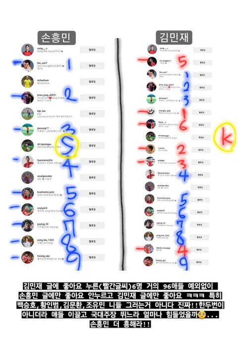 6명(빨간숫자)(대부분96)은 김민재 글에는 좋아요 눌렀는데