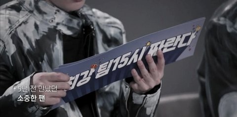 무대가 끝난 후 슬로건을 전달한 팬