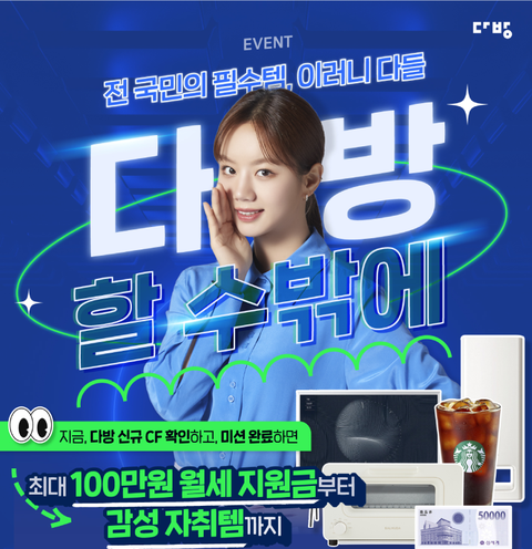 월세 사는 사람들이라면 폰에 다들 깔려있을 다방에서 이벤트를 진행 중이거든요!!