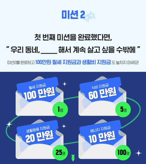 월세 지원금에 식비 지원금, 생활용품 지원금, 에너지 지원금이 준비 되어 있구요