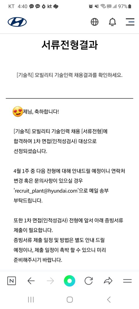 나랑 4살 터울인 동생을 내가 엄청 아껴!! 따로 살아서 오늘 연락받았는데 현대차 생산직 모빌리티인력 서합했대!!!!!! 나 그래서 오늘 계속 싱글벙글ㅎㅎ 너무 기분이 좋았어!!!! 나는 2년 백수끝에 작년에 LH입사했고, 동생은 아직 대3이지만 최합까진 아니어도 저렇게 600대1로 서합한게 너무 기특해ㅠㅠㅠ 먼가 이제 부모님께 경제적으로도 크게 효도할 수 있고, 뭣보다 자식걱정 안하셔도 된다는 안정감을 드린다는게 너무 감사해ㅠㅠ