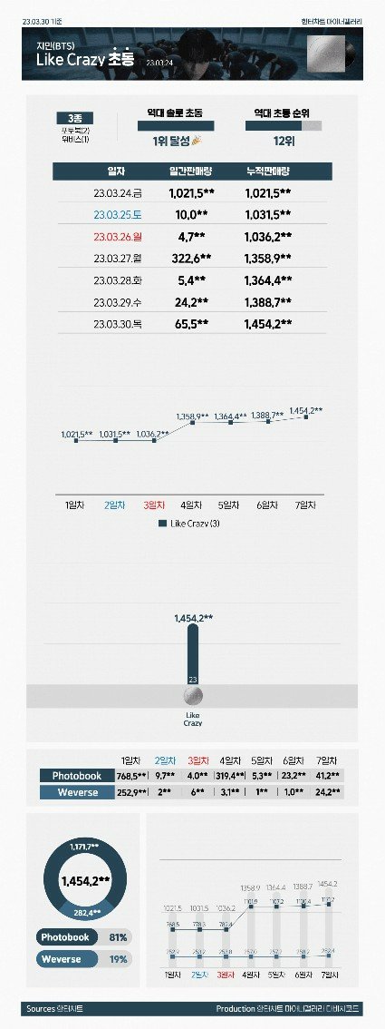 지민아 진짜 자랑스럽다ㅠㅠㅠㅠ.역대 솔로 초동1위야 145만장 미.첫다ㅠㅠㅠㅠㅜ