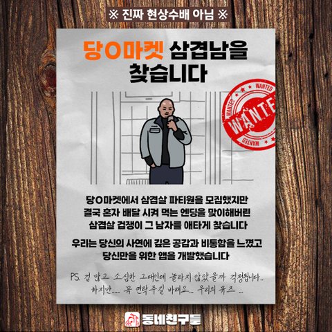삼겹살을 같이 먹는다는 구인 글을 보았을 때, 그리고 그 후기를 읽고 나서 비통한 마음에 앱을 개발했습니다.