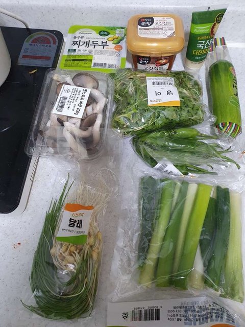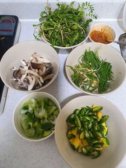 재료준비 달래 냉이 호박 느타리버섯 다진마늘 된장