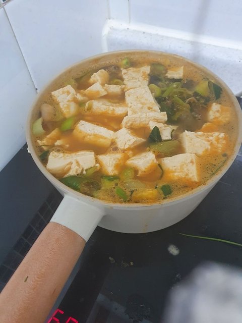 그리고 야채가 익으면 마지막으로 대파와 두부를 넣고