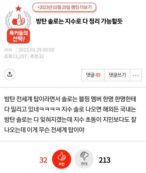 추천수 ㅂㄹ 되지도 않는 쩌리 댓글들 가져와서 정신승리 열심히 해라 ㅋㅋㅋㅋ 어차피 이쁘다는 댓글은 추천수 몇천 몇만갠데 ㅋㅋㅋㅋㅋ..