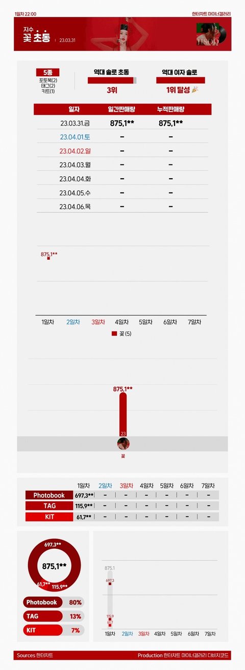 블핑 지수 초동 첫날 87만장으로 마무리함