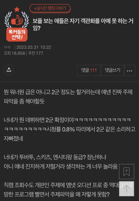 진심...쟤 뭐지?? .... 우린 지금 우리 애들 데뷔조부터가.걱정인데여... 현역돌을 왜 패 ㅅㅂ ㅋㅋㅋㅋ?