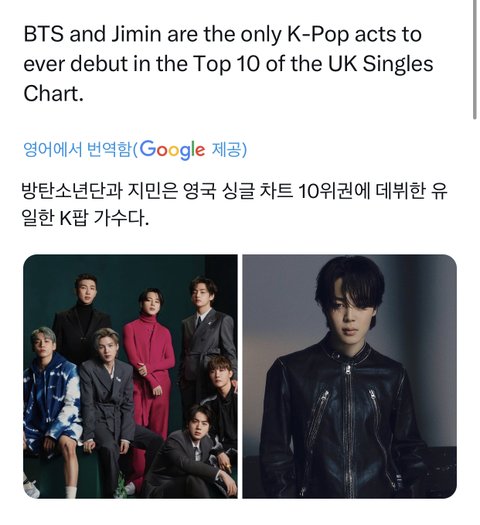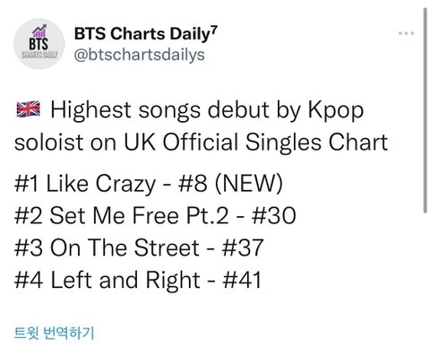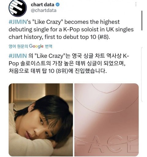방탄 지민 한국 솔로 최초 영국차트 8위!!!