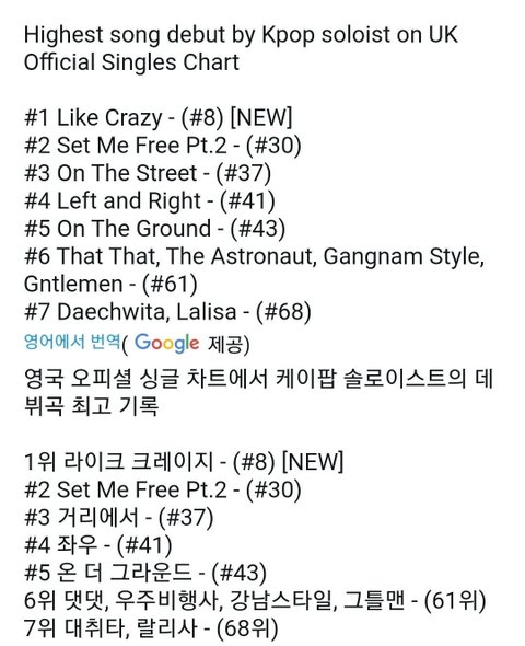 영국의 빌보드 같은 차트인데 여기가 엄청 보수적이라 차트 들기 힘들다는데 대박임ㅋㅋㅋㅋ