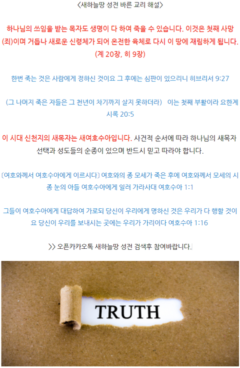 양심고백합니다. 신천지의 육체영생은 모두 트렸다.
