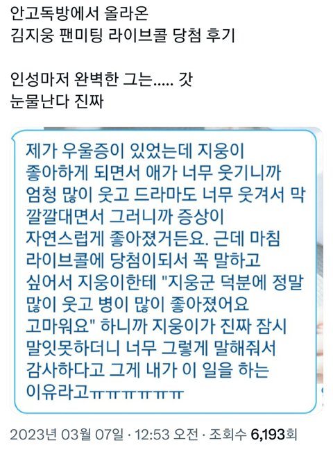 얘 예전부터 팬사랑ㅆㅅㅌㅊ였음 우울증팬이랑 영통한 썰 듣고 진짜 더 좋아졌어