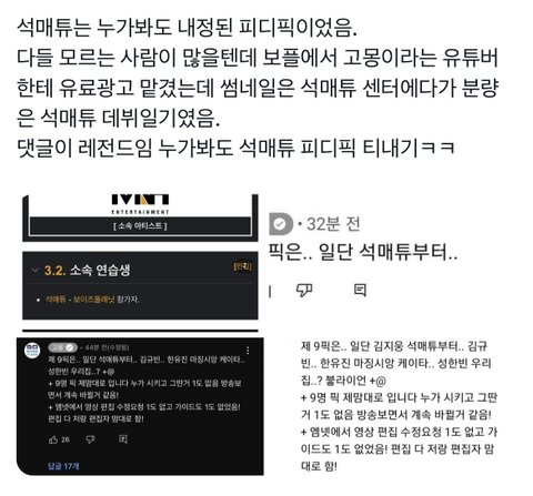 쓰니야 제목을 ㅅㅁㅌ가 아니라 엠넷 해명해로바꾸는게낫겠다. 2.5점인데 올스타 ㅈㄴ소름이네