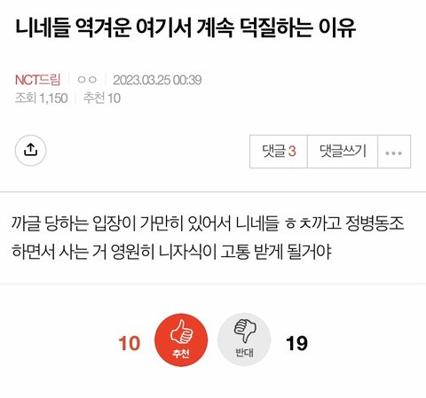 개웃창임 여기서 드림이들 까글쓰고 멤프간 이간질하는거 전부 다 저 정신병걸린 해프인거 모르는 드프없을듯 저때 이해찬까글 제외 드림까글만 추천수 올라가서 주작질도 개티나더라 ㅅㅂ 해프단톡 민폐 ㄴ들아 이해찬데리고 드림톡에서 꺼져