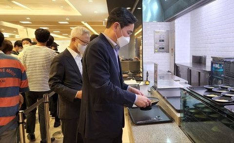 (사진1 설명) 이재용 삼성전자 회장이 지난해 8월 경기도 용인시 삼성전자 기흥캠퍼스를 찾아 구내식당을 이용하고 있다. 이 회장은 점심 메뉴로 이날 우삼겹 숙주라면을 선택했다. 사진 삼성전자
