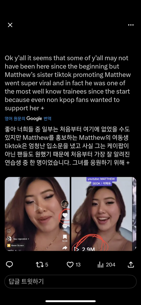 그리고 매튜누나분이 유명한틱톡커인데 막판에 매튜홍보도 하셧나봐