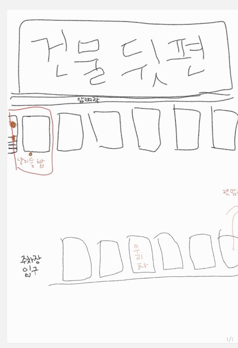고양이가 한 두 마리 보이는 거예요(저희 차는 마주 보는 편 오른쪽 중간쯤에 주차)
