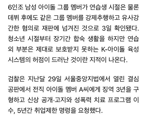 6인조 남자 아이돌 그룹 멤버가 같은 멤버 강제추행에 유사강간 혐의로 재판갔대