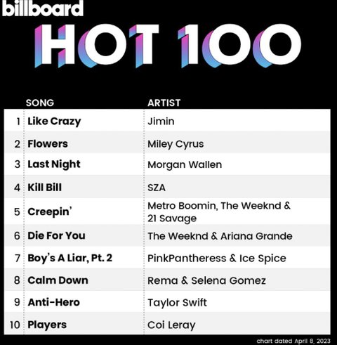 핫백 1위 곡중에서 한국 가수 곡이 7곡인데 그중 6곡은 방탄이고 1곡이 이번 라크 박지민 솔로 곡이라고 함