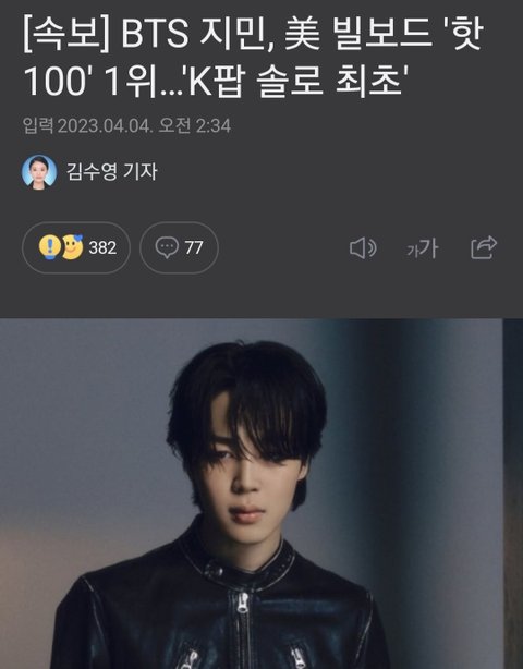 속보 지민 빌보드1위
