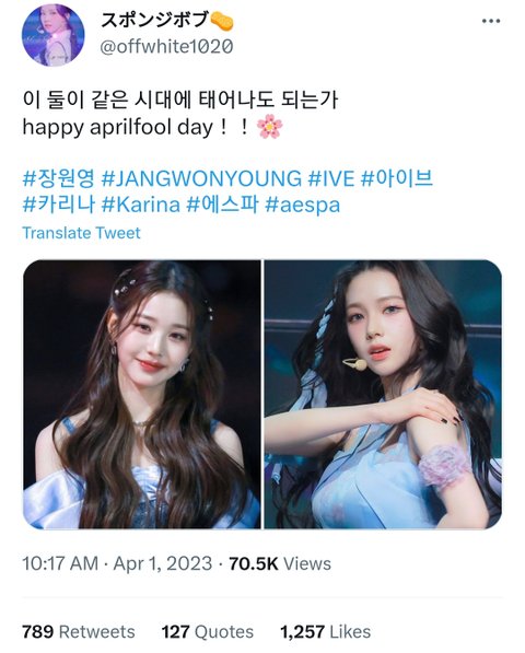 만우절이라고 올려준 타돌 홈마들의 장원영, 카리나 사진
