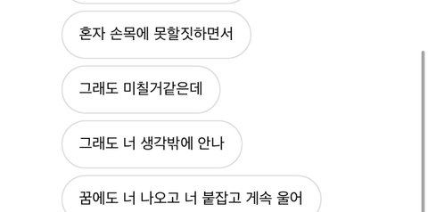 처음엔 빡쳤는데 다른 애한테서 진짜 손목에 흉터 있다는 거 알게 되니까 좀 무서워 나 때문에 얘가 안 좋게 되면 어떡하나.. 하고