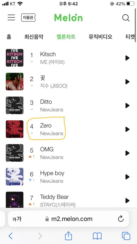 뉴진스 zero 멜론 4위임