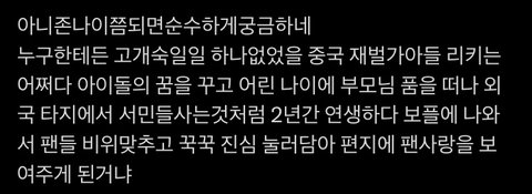 트위터에서 본건데 개웃김 진짜 아쉬울거 없는 부잣집 도련님께서 제발로 아이돌하겠다 와서 개고생하는것도 신기한데 보플(거대한 리키 인권유린장소)나와서 뿌잉뿌잉하는것도 웃겨 죽겠음 아 니때매 산다………