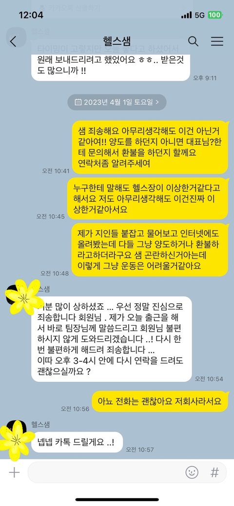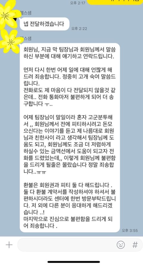 일단 전화를 끊고 샘이 미안하다고 사과 카톡이왔습니다