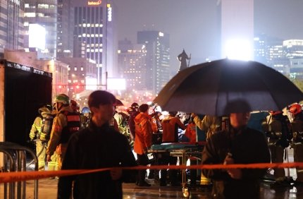 4일 오후 8시52분쯤 서울 종로구 광화문광장 세종대왕상 앞에서 50대로 추정되는 남성 A씨가 분신해 중태에 빠졌다.
