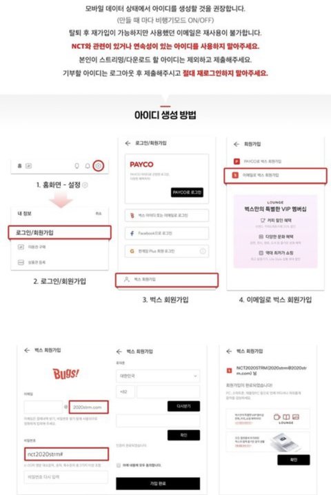 아이디 임의로 만들고 비밀번호는 nct127day!로 생성
